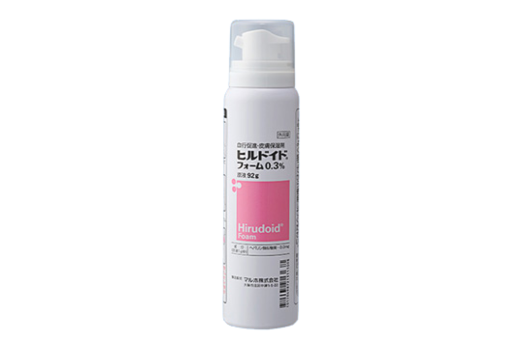 2018年に薬事承認された最も新しい剤形で、細かい泡状で出てきて徐々に液状化します。油分が含まれていないためべたつかず、さっぱりとした使用感です。ヒルドイド特有の匂いが少なく、乳幼児にも使いやすい製剤です。